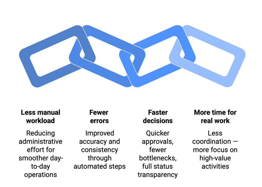 Stable operations require transparent workflows, organised documents and automated approvals.